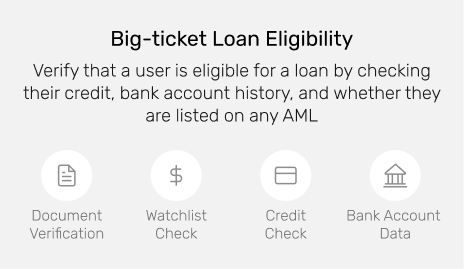 Verify that an individual is eligible for a loan by checking their credit, bank account history, and whether they are listed on any AML watchlist
