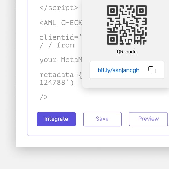 Build custom workflows and create your own UX. The collected information is sent to MetaMap and is verified in seconds.